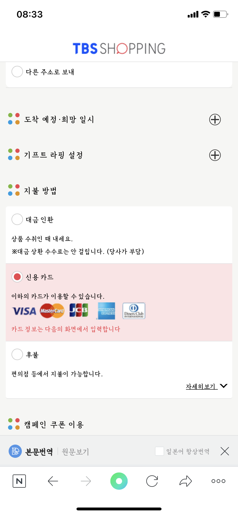결제 단계 - 신용카드