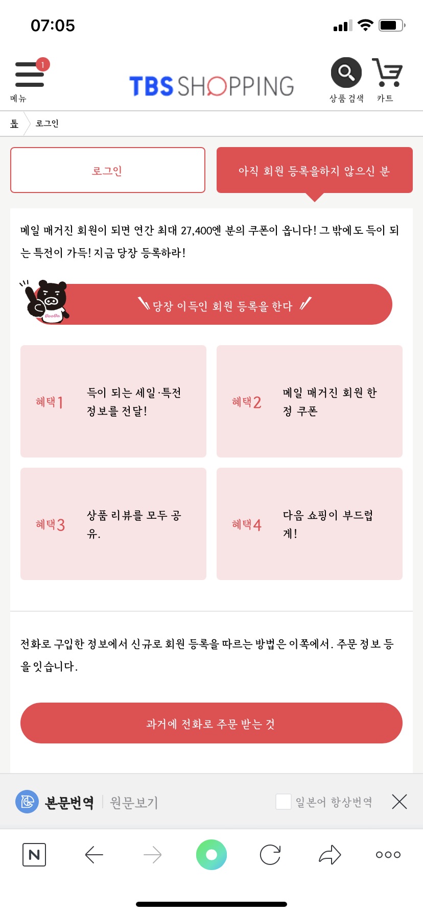 TBS샵에서 비회원 구매도 가능한 걸로 알고 있는데
