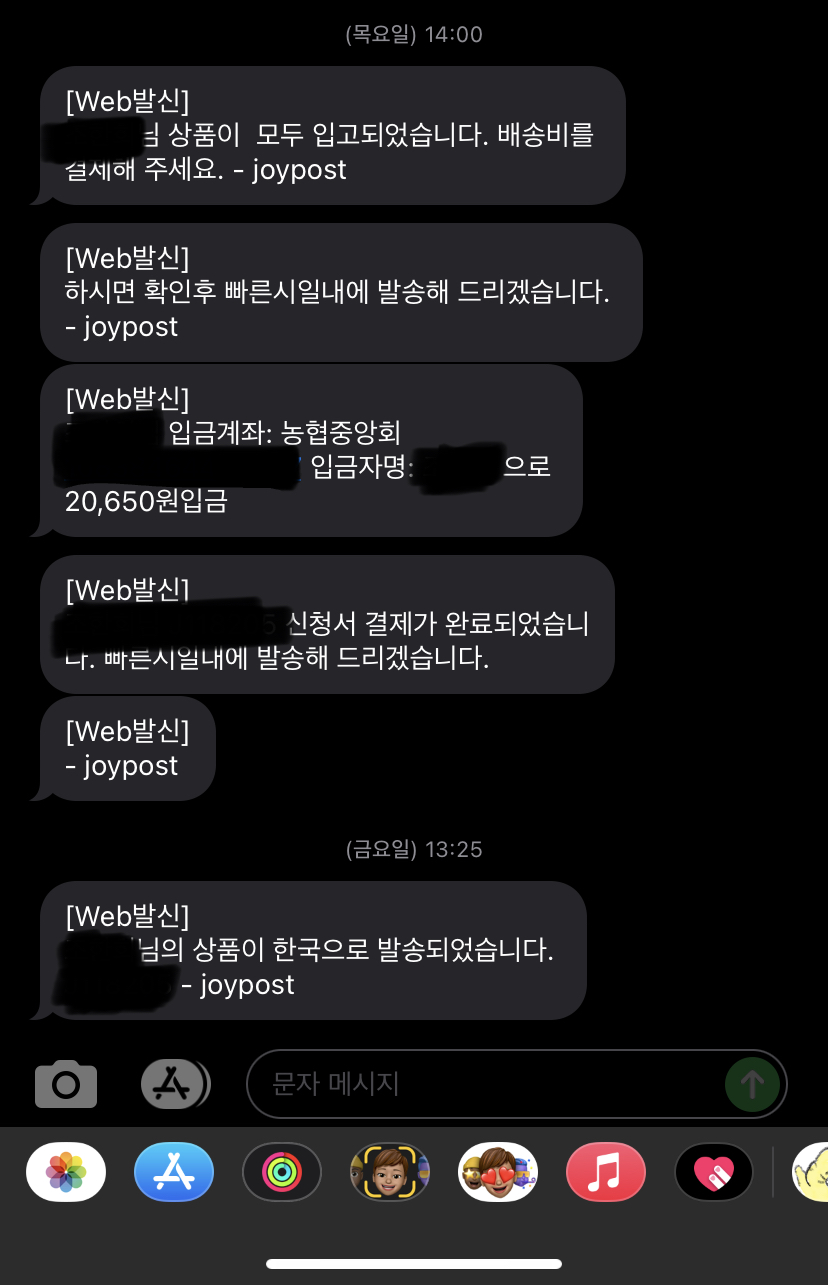TBS샵에서 한국까지는 배송이 불가하여 배송대행사 도움을 받았다. 난 조이포스트라는 업체를 이용했다