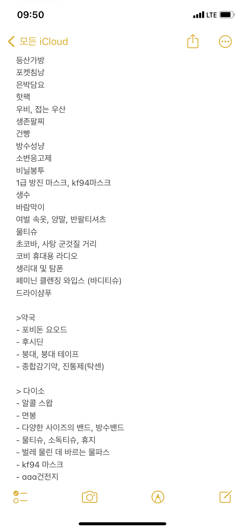 여기까지 쿠팡에서 구매하였고, 약국과 다이소에서 구급약품과 추가로 필요한 것들을 구매했습니다.
